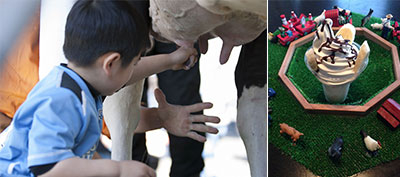 「乳しぼり」コーナーでも協力していただいている相澤良牧場が生産している、農林水産大臣賞受賞のソフトクリームが、ドールのバナナとおいしくコラボ!先着150名の小学生以下のお子様には「乳しぼり券」を進呈します。
