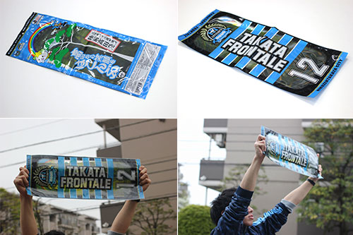 2015年の9月に岩手県陸前高田市と友好協定(高田フロンターレスマイルシップ)を結んだ川崎フロンターレ。三陸の美味しいものをもっとみなさまにお届けしたいとの思いから陸前高田地域振興株式会社様とタッグを組み、応援の定番グッズ『タオルマフラー』風デザインで商品化しました。選手入場時は板こんぶを掲げよう!!もちろん食べても絶品です。