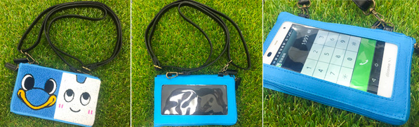 マスコットモチーフのマルチポシェット(2ポケット)。裏面は窓付きポケット!もちろんスマホの操作もできます。