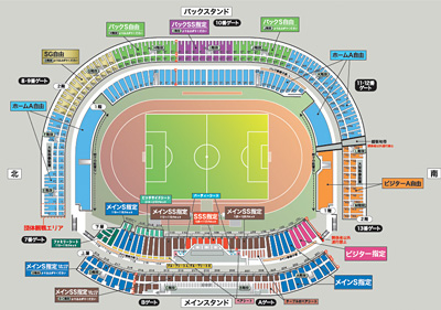 | ◇団体観戦エリアについて ホーム側ゴール裏2階席(E階段上付近)に団体観戦エリアを設けさせていただきます。専用チケットをお持ちでない方は、団体観戦エリアにはお入りいただけません。なお、団体観戦エリアに空席がある場合には、キックオフ45分前(13時15分)以降、一般のお客様にもご案内いたします。 |