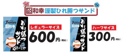 | 物販① | ◆創業昭和33年!川崎生まれ川崎育ちのとんかつ和幸特製弁当![]() ◇選手セレクト弁当:各800円(税込) ◇謹製ひれ勝つサンド(レギュラー):600円 |