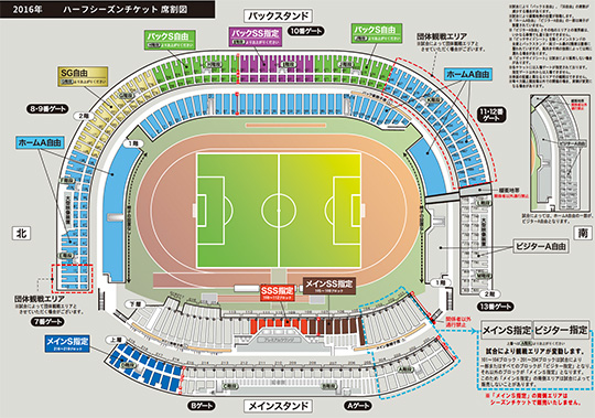 ※バックスタンドの車椅子席(バックスタンド1階コンコース)ご利用希望の方は「ホームA自由」のシーズンチケットをご購入ください。
