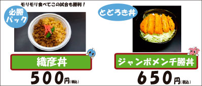 | 物販① | ◆創業昭和33年!川崎生まれ川崎育ちのとんかつ和幸特製弁当![]() ◇選手セレクト弁当:各800円(税込) ◇謹製ひれ勝つサンド(レギュラー):600円 |