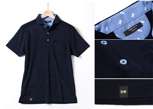 | 商品特長 | ・素材は吸水速乾性に優れてドライタッチのクールマックス素材を使用。(綿43%・ポリエステル57%)パイル地なので肌触りが良く、伸縮性に優れて、着心地が良いのが特徴。 ・衿型はショートワイド。胸ポケット付き。 ・ボタンのフロンターレブルー、つけ糸のフロンターレブラックでコラボ感を演出。 ・裾には20周年の織りネーム入り。 ・襟裏の別布は、ふろん太とORIHICA鍵マークのコラボ感たっぷりの仕様。(襟裏別布素材 綿60%・ポリエステル 40%) |