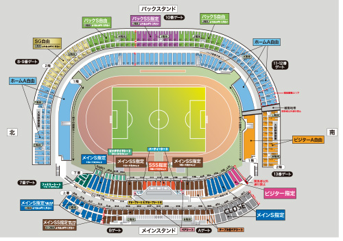 ※メインスタンド上層南側は販売状況により「メインS指定」として販売する場合がございます。