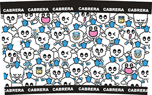 なぞの覆面レスラー「リアルカブレラ」がワルンタ、Laundryマスクマンを従えたデザイン。カブレラが主役なのでふろん太はおりません。