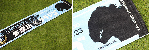 今回の「多摩川クラシコ」は7月29日(金)より公開される映画『シン・ゴジラ』とタイアップ!そこで、タオルマフラーももちろん『シン・ゴジラ』とのコラボデザインです。