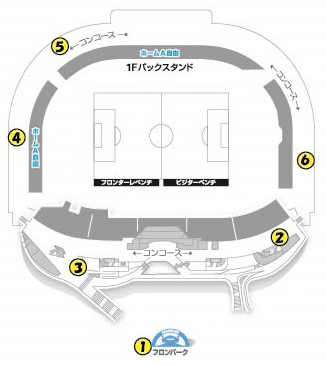 ⑤バックスタンドG階段横(Gゾーングッズ売店横)
