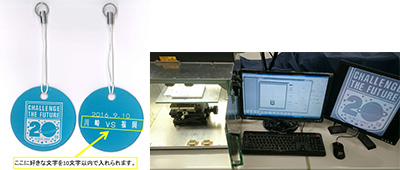| 企画⑧ | ◆オリジナルキーホルダーにイニシャル刻印入れ体験20周年のロゴが入ったアルミのオリジナルキーホルダーに自分のイニシャルを打ち込む体験ができます。