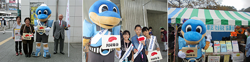 駅前や区民祭でふろん太が募金活動をお手伝いします!