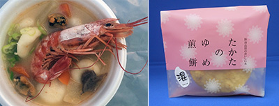 ◆陸前高田のブランド米「たかたのゆめ」で作った海老ばっとう&煎餅販売