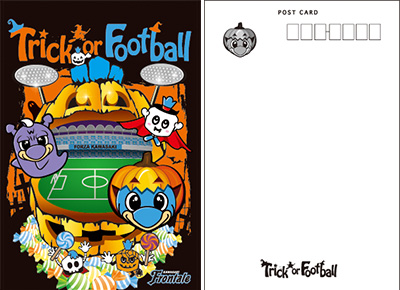 | 内容 | 10月といったらハロウィン!!2014シーズンには「ハロー!ウィン!(勝利よ来い!)」イベントを実施しました。 今回は、「パンプキンスタジアム」と化した等々力競技場が舞台となっており、「Trick or Footballサッカーをしなきゃ、いたずらするぞ」と練り歩く、ふろん太、カブレラ、ワルンタが様々な姿で登場。 キャンペーン期間中に1,500円以上(税込)お買い上げの方、先着100名様にオリジナルハロウィンポストカードをプレゼント! さらに3,000円以上(税込)お買い上げの方にはポストカードとステッカーのセットをプレゼント! ◆ハロウィンポストカード ![]() サイズ:A6 ◆ハロウィンステッカーシート(ステッカー全9種類) ![]() サイズ:A6 【Wチャンス】 ポストカードの数枚に大島僚太選手、小林悠選手、大久保嘉人選手、中村憲剛選手の直筆サインを入れてプレゼント!誰のサインかはGETしてからのお楽しみ! ![]() ※賞品がなくなり次第、終了となります。 ※6,000円(税込)以上お買い上げの方も1セットのみプレゼントとさせていただきます。 ※後援会各種手続き・チケット購入・ガチャフロ・自動販売機「ユニパッチン」、「ネイルプリ」はキャンペーン参加対象外となります。 |