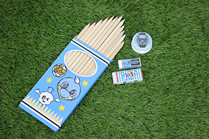 ◆色鉛筆(12本セット):画像左 価格:648円(税込) ◆鉛筆削り:画像右上 価格:540円(税込) ◆消しゴム:画像中央 価格:108円(税込) ◆ヒロキー消しゴム:画像右下 価格:250円(税込) |