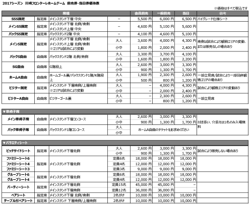 川崎フロンターレでは2017年シーズンの席割および入場料について、下記の通り決定いたしましたので、お知らせいたします。