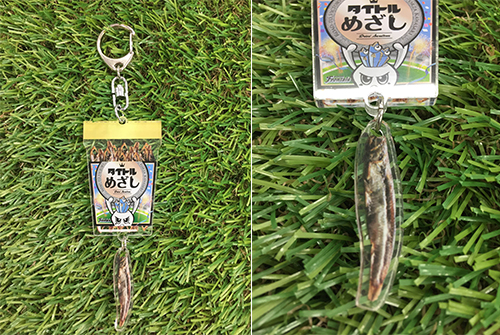 常に「タイトルめざしとともに!!」そんな気持ちのみなさま向けにキーホルダーにもしてみました。ポイントは下にぶら下がる『リアルめざし』。