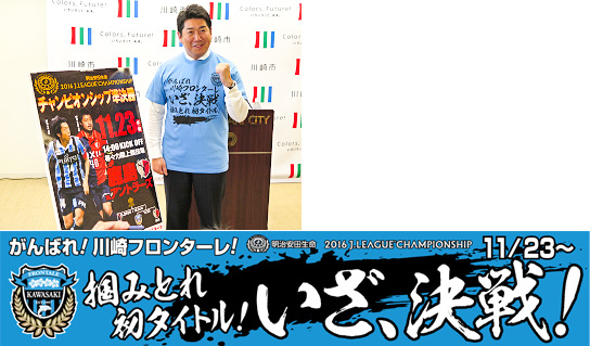 | キャンペーン② | 川崎市内7区役所(川崎区は市役所)にチャンピオンシップ用懸垂幕掲出 【協力】川崎市 【掲出日】11/18(金)〜 ![]() |