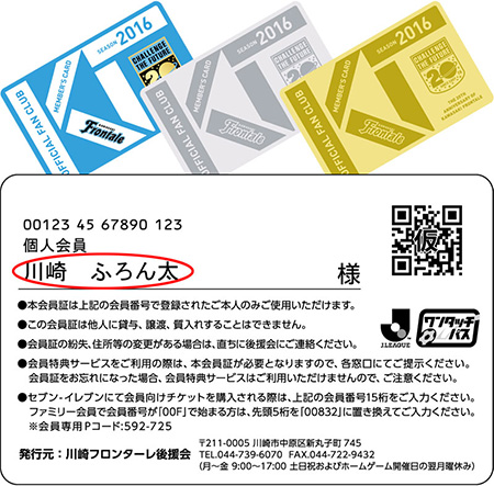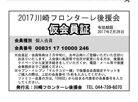 | 対象 | 2016、2017年川崎フロンターレ後援会会員