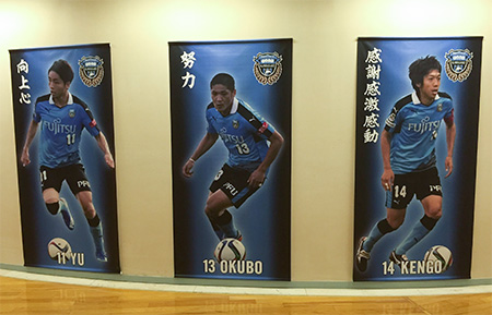 毎年フロンターレ展で展示し、ご好評いただいている等身大タペストリー。今年も、展示しているタペストリーと同じものをWEB限定にて受注販売いたします!また、今回から多くのみなさまからのご要望にお応えし、サイズの小さなタペストリーも受注販売いたします。