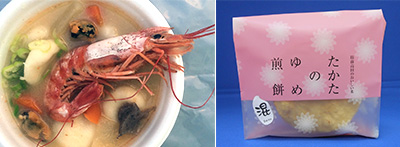 海老の出汁を効かせた味噌味の海老汁に、陸前高田のブランド米「たかたのゆめ」の米粉で作ったすいとんが入った“これぞ陸前高田”という美味しい海老汁です。売切れる可能性が高いのでお早めに!