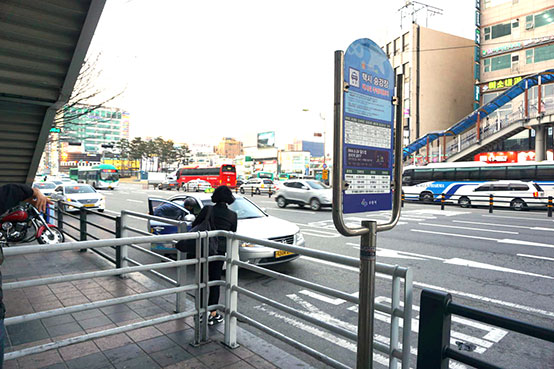 地下鉄1号線6番出口より地上へ、その他の鉄道1番出口よりタクシー乗り場へ(約6,100ウォン、所要約20分)