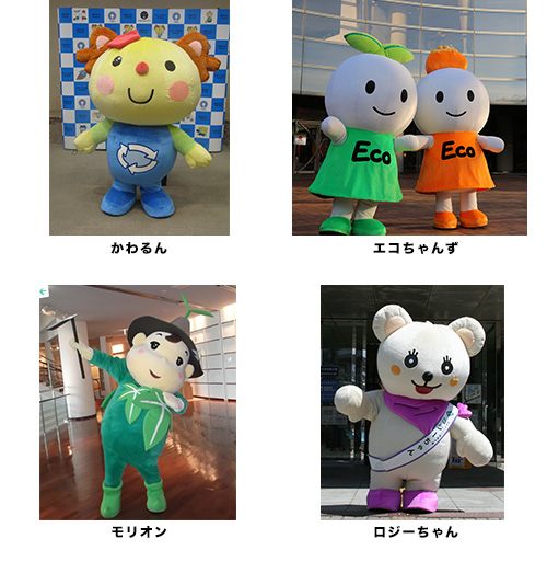 | 内容 | 今まで市内で行われたエコイベントなどでエコをPRしてきたかわさきのエコキャラクター、エコちゃんず(CCかわさきイメージキャラクター)、かわるん(かわさき3R推進キャラクター)、モリオン(川崎市民100万本植樹事業イメージキャラクター)、ロジーちゃん(なかはらエコ推進大使)が出題するエコクイズにチャレンジしてグッズをゲットしよう。 |