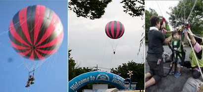 熱気球のように火を使わず、ヘリウムガスの入った大型バルーンで空中遊泳が楽しめます!