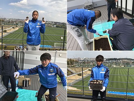 今年度、愛情たっぷりでカブトムシの幼虫を育ててくれたのは、昨年度イタリアでも昆虫家として名を馳せた森本選手とカブトムシの飼育は全くのド素人にも関わらず自らやりたいと志願し、モリに弟子入りした長谷川選手です。初めてのカブトムシ作業では腰が引けてビビッていたタツヤ。モリの背中を見て育てたカブトムシはイベント当日にお楽しみください!