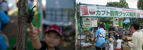 採集したカブトムシと一緒に遊ぼう!また採集したカブトムシの育てるのに不可欠な飼育アイテムの即売会を実施します。