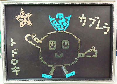 金属素材をマグネットシートに貼り付けて、自分だけのオリジナルカブレラをつくろう!磁力で貼っているので、自宅で何度でも工作できます! |