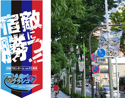 | 企画⑧ | ◆多摩川クラシコ タペストリー 新デザイン登場 多摩川クラシコを盛り上げるために製作された専用タペストリー。第30回多摩川クラシコを記念して、デザインを一新しました!