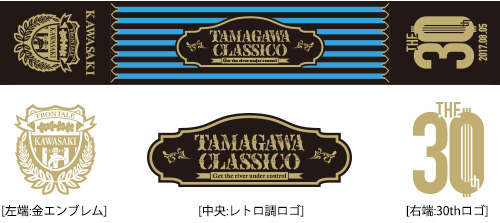 | 企画⑩ | ◆第30回多摩川クラシコタオルマフラー[川崎ver.] 記念すべき30回を迎える多摩川クラシコ。タオルマフラーは「クラシック」をテーマに、シンプルなデザインを採用。また、シンプルな中にもメモリアル感のあるロゴやモチーフを盛り込みました。