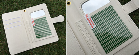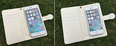開閉部分にはマグネットがついており、手帳のバタつきを抑え、スマートフォンの画面を保護します。 |