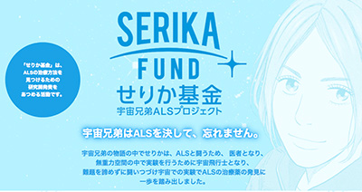 昨年、クラブ創立20周年にただいな協力をいただいた「宇宙兄弟」。その物語の中に『せりか』というヒロインがいます。彼女は、まだ原因もわからず治療方法も確立されていない難病・ALSと闘うため、 医者となり、無重力空間の中で実験を行うために宇宙飛行士となり、難題を諦めずに闘いつづけ、宇宙での実験でALSの治療薬の発見に一歩を踏み出しました。今回「宇宙兄弟」は「せりか基金」を立ち上げ、チャリティグッズの販売によりALSの治療方法を見つけるための研究開発費をあつめ、現実でもALSを治療可能な病気とするための活動を行っております。川崎フロンターレはその主旨に賛同し、チャリティグッズの販売協力を行います。尚、チャリティグッズの売り上げは、諸経費を除いた後、ALSの治療研究にむけた資金として、各研究機関に寄付いたします。
