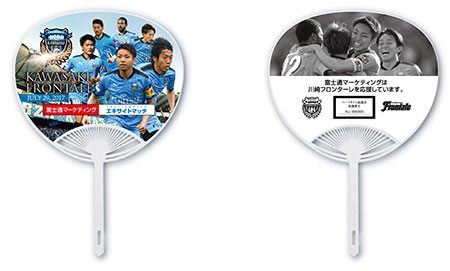 7番、10番ゲート、Bゲートで先着10,000名様に配布する富士通マーケティング×川崎フロンターレオリジナル団扇に抽選番号を記載。抽選で豪華賞品をプレゼントします!ハーフタイムをお楽しみに!!
