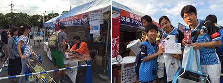 ※当日、缶バッヂの進呈はありません。 集まった募金は8月15日に同クラブがスルガ銀行チャンピオンシップで来日の際に、Jリーグから義援金として渡される予定です。 |