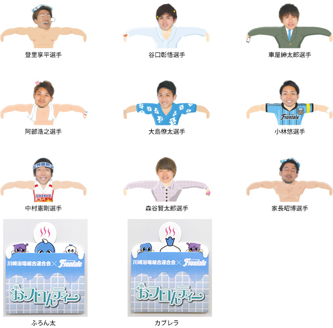 期間中に川崎市内の浴場組合連合会加盟銭湯でご入浴代をお支払い時に、2017川崎フロンターレ後援会会員証もしくはホームゲームチケット半券のご提示で、キャンペーン限定ノベルティ「おフロんティー」をプレゼント!!