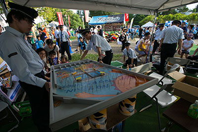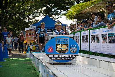 | 企画⑥ | ■ピッタリを目指せ!「リアル電車deゴー!」! フロンターレオリジナル電車アトラクションの「リアル電車deゴー」が今年も登場します!運転手が乗った電車を押して、決められた場所にピッタリ停まれば豪華賞品をプレゼント!今年の豪華賞品は抽選確実!武蔵小杉駅の「一日駅長体験」に6名をご招待!