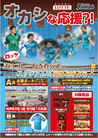 川崎フロンターレコラボレーションパートナー「ロッテ」では、川崎市内セブン-イレブン限定で下記のとおり「川崎フロンターレ応援キャンペーン」を実施いたしますので、お知らせいたします。