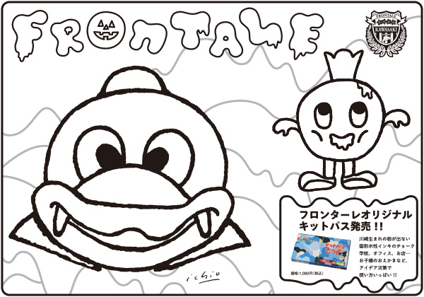 「KAWAハロー!ウィンPARTY」の開催を記念して試合当日グッズ購入者全員に下記のぬり絵シートをプレゼントいたします!!自分だけのふろん太、カブレラを書いちゃおう!!