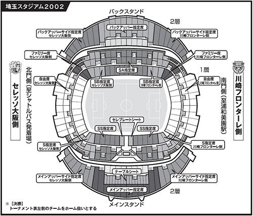 | SA指定席 | バックスタンド | ¥4,500 | C大阪側/川崎側の指定不可 | |
