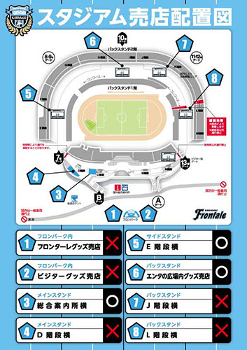 | 設置場所 | ◆メインスタンド場内総合案内所横(AZZURRO NERO in等々力) ◆バックスタンドエンタの広場グッズ売店 |