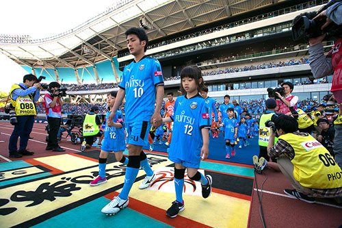 川崎フロンターレの公式戦(ホームゲーム)の際、両チーム選手と手をつないで入場(最大22名)、フラッグを持ちピッチに入場(最大14名)します。