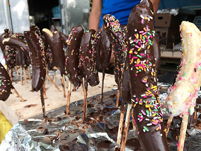 普段フロンパーク飲食売店エリアで販売しているチョコバナナがこの日はフロンパークイベントエリアに登場!カラースプレーやコアラのマーチなど、自分だけのオリジナルチョコバナナを作ろう!世界に一つだけのチョコバナナは食べる前に写真を撮ってね!