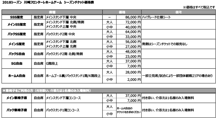 ※価格には2018年川崎フロンターレ後援会入会金・年会費は含まれません。