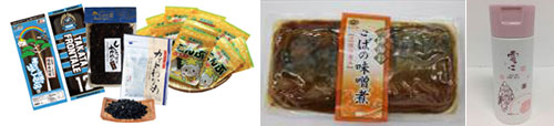 フロンターレとのコラボした板昆布の販売や地元産の魚や佃煮類を中心に前高田のおいしいものを販売します。個包装になっているので、お土産にバッチリ!