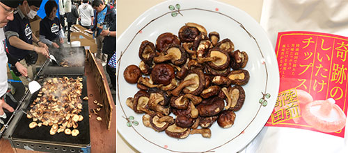 バターで焼いたしいたけは、パクパク食べてあっという間にお皿からなくなるほどの絶品!また、開発を重ねて生まれた「しいたけチップス」が新登場!