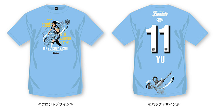 フロント・バックデザインともにユウのゴールパフォーマンスを躍動感のあるグラフィックでデザイン。