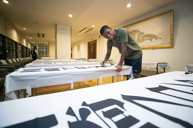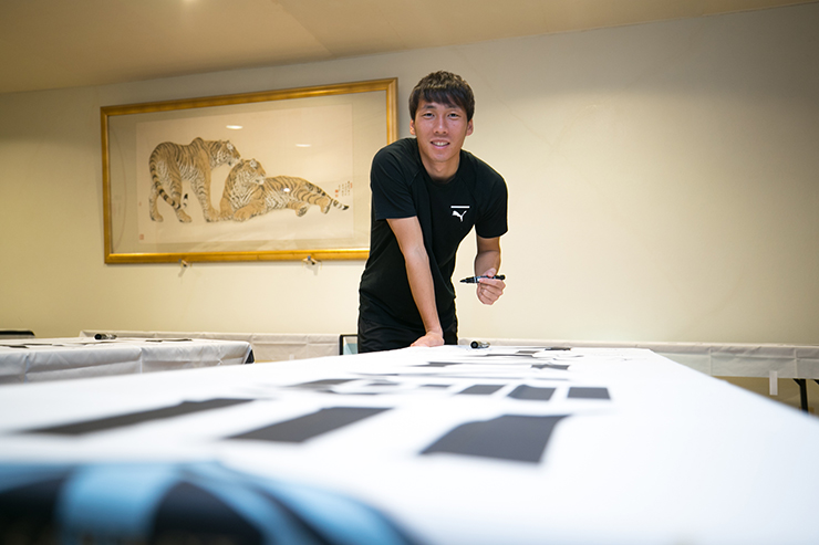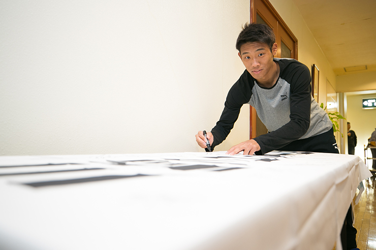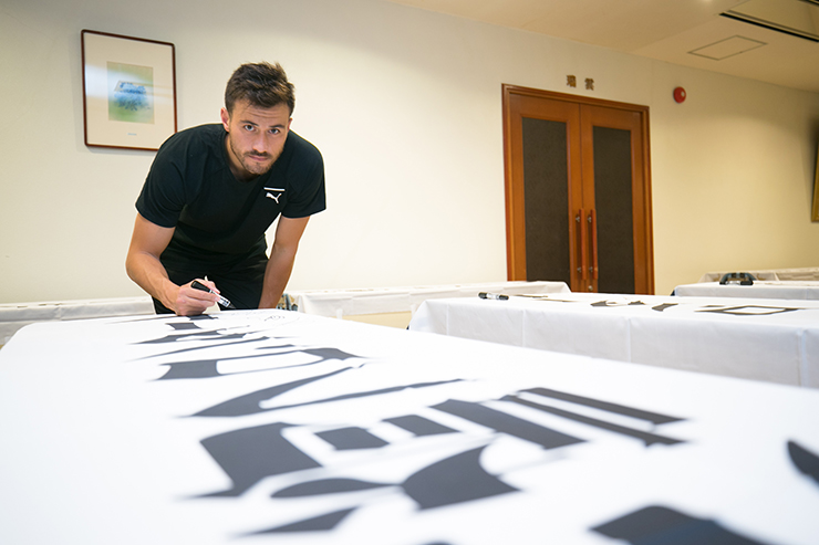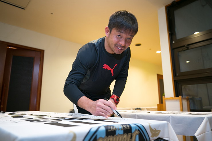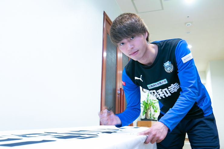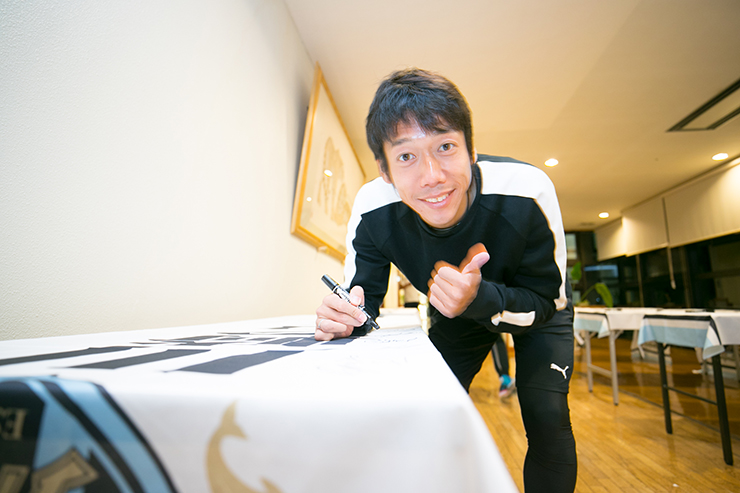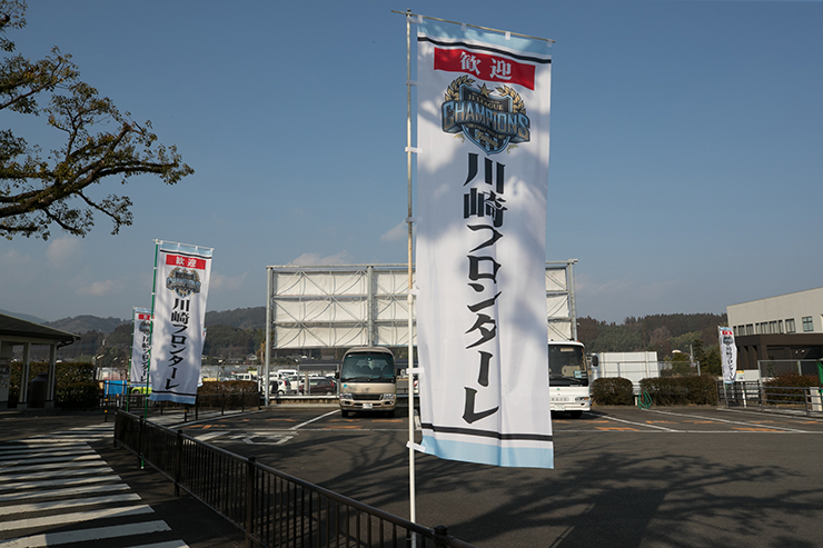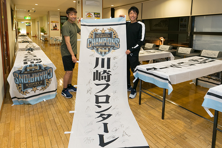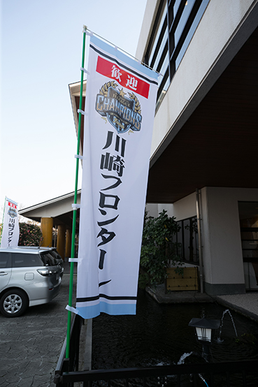 川崎フロンターレでは、2018シーズンに向けてのトレーニングキャンプを実施しておりました宿泊先である宮崎県綾町の「酒泉の杜」様のご厚意で、施設内に設置されていた2017シーズンの優勝ロゴが入った「のぼり旗」に、キャンプ参加の全選手のサインを入れてプレゼントすることとなりましたのでお知らせいたします。