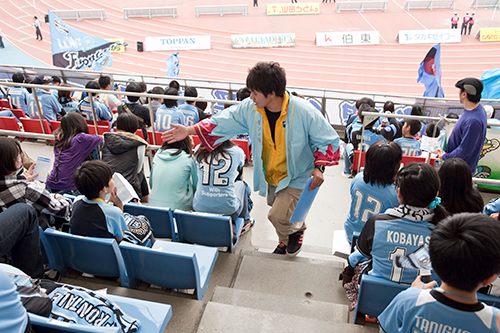 今シーズンもお子様連れのファミリーの方々とその周りのファン・サポーターに快適に観戦していただけるようにご案内をしています。