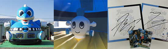 ふろん太ふわふわで遊んでくれた方全員を対象に、選手のサイン色紙等が当たる抽選会を実施いたします。是非この機会にふろん太ふわふわで遊んでください。
